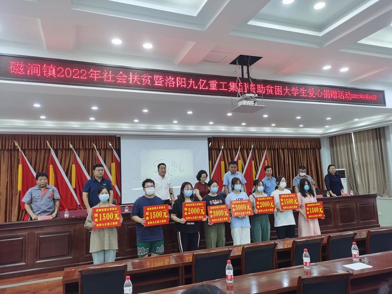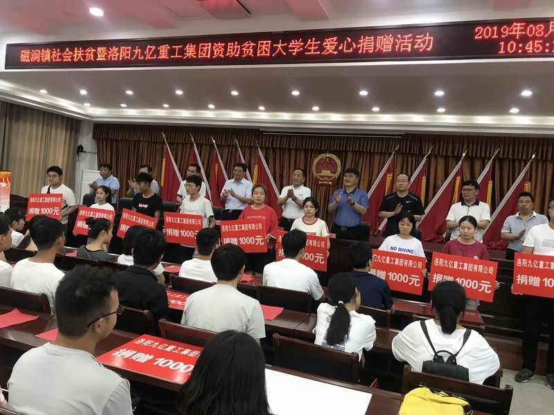 愛是與生俱來的,在血液里流動,在骨子里結(jié)晶,它源源不斷的由心而生,永不枯竭,只要人人都愿意奉獻(xiàn)一點愛,就如甘霖沐浴大地,人間處處盛開幸福之花! 為響應(yīng)洛陽市政府精準(zhǔn)扶貧政策,洛陽九億重工集團(tuán)有限公司及董事長王九茂積極參與捐資助學(xué)的慈善義舉活動,特做出如下決定:1、公司幫扶磁澗鎮(zhèn)2017年新招貧困大學(xué)生21名順利入學(xué),每人資助2000元,總計肆萬貳仟元整; 2、總經(jīng)理王九茂(縣政協(xié)委員)以個人名義資助磁澗鎮(zhèn)南窯村2017年新招大學(xué)生6名,總計12000元整; 我相信,在社會各界的大力支持和共同努力下,我們的“愛心助學(xué)”活動將會惠及到更多的同學(xué),為了夢想,刻苦讀書、報銷祖國,廣大同學(xué)也一定會在溫暖的社會大家庭里茁壯成長,必將成為國家建設(shè)的有用之才! 洛陽九億重工集團(tuán)有限公司 董事長:王九茂